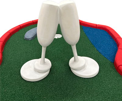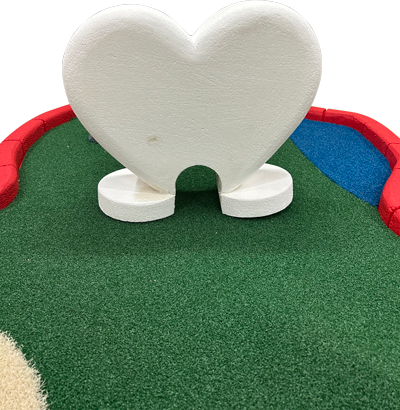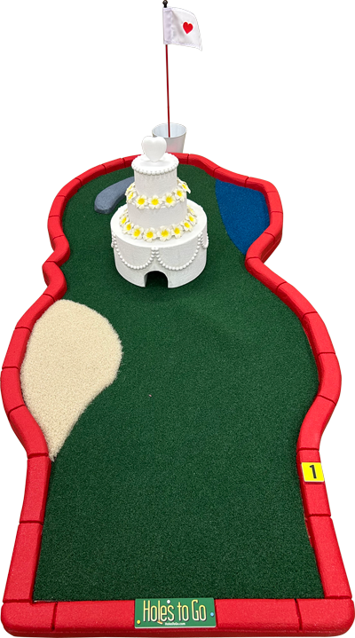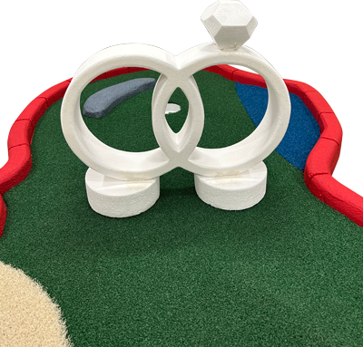 • 6 obstacles (all in white and putt through – wedding cake, LOVE, champagne flutes, heart, wedding rings and chapel)